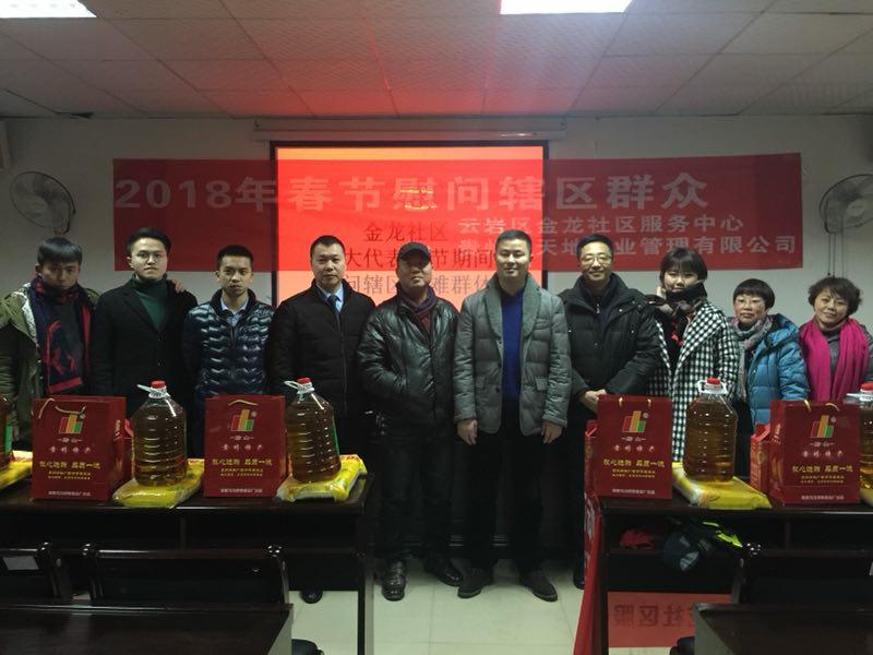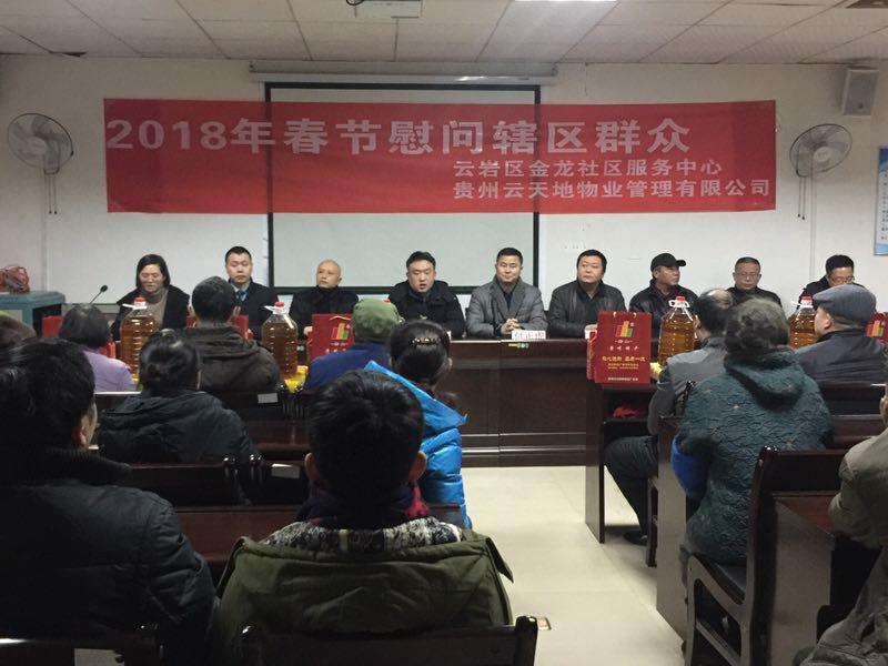 贵阳市政协委员、云岩区人大代表、贵州省四川总商会党支部副书记、优米网官方下载安装常务副会长兼秘书长、贵州云天地物业管理有限公司董事长付正虎,主动将关爱弱势、困难群体、扶贫攻坚作为己任,在今年新春佳节即将来临之际,又像历年一样,专门作出具体安排,购买腊肉、香肠、大米、食油、“老外婆”调味品各五十份,红包五十个(三百元)。亲自率领公司高、中层人员,前往云岩区金龙社区服务中心进行慰问,将慰问品及红包亲自登门送到慰问对象手中。