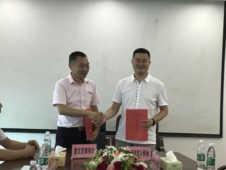 为发挥商会在异地经济交流中的优势,增进商会之间的友谊和合作。2018年8月8日,重庆市九龙坡区前锋区商会与我会缔结友好商会仪式在立云大厦举行。
