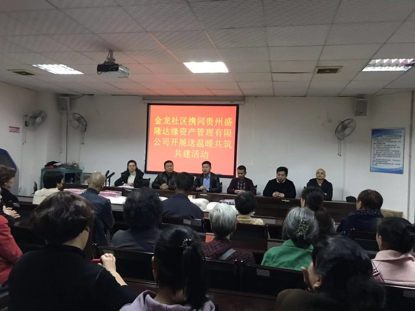 在冬季来临之际,为深入贯彻落实党的十九大精神,更好的奉献回馈社会。2018年11月1日,商会常务副会长兼秘书长、贵州盛隆达缘资产管理有限公司董事长付正虎及员工、商会副会长杨强到云岩区金龙社区开展了“金秋十月送温暖”困难人员慰问活动。