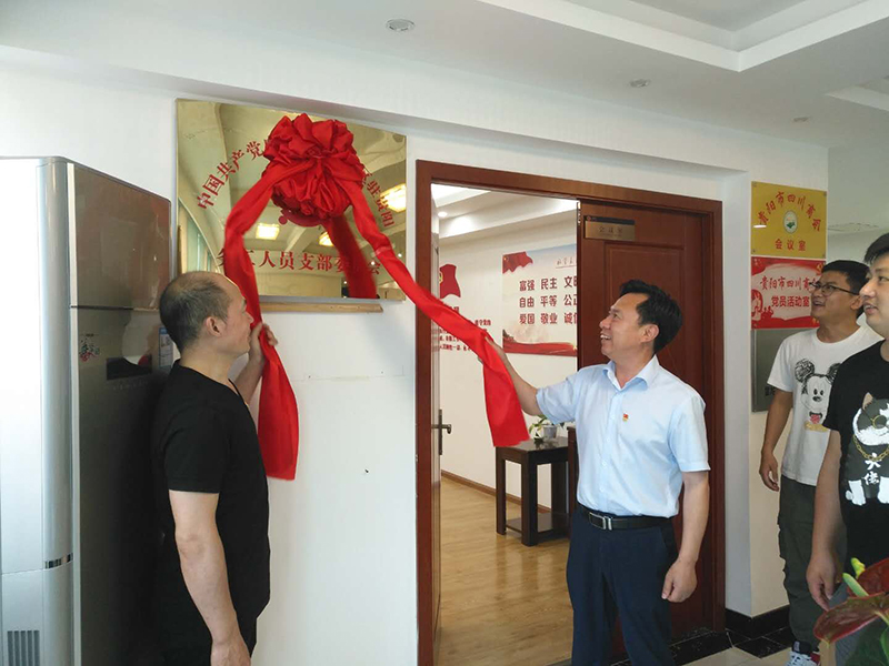 协兴园区杨德高主任主持并宣读协兴园区党委《关于成立协兴园区流动党支部委员会的批复》,我会会员周清川同志任党支部书记。杨主任代表协兴园区党组织提希望和要求。周清川同志表态:一定不辜负党组织和党员同志的希望;一定要积极学习,努力工作,创新创业,带领党员认真学习并坚决执行党的路线、方针、政策,在各方面发挥党员先锋模范作用;一定要努力学习党的基本知识,搞好党支部各项学习、“三会一课”、党员培养、发展、教育等工作。广安市协兴园区是伟人邓小平故里,作为一名党员,更应用党员标准严格要求自己,做好党支部各项工作,为贵阳市社会、经济、文明、建设等作出积极贡献。