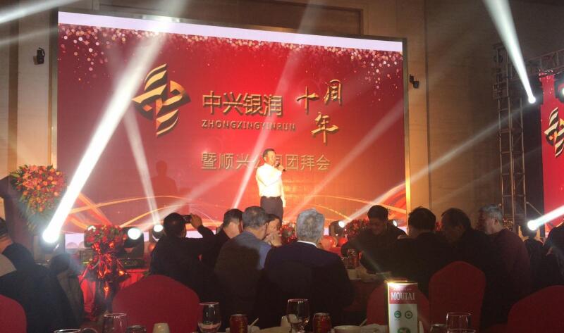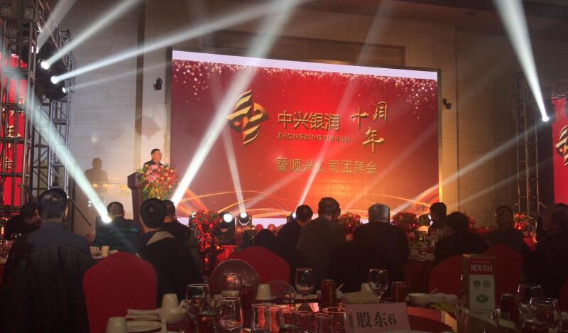 2019年12月18日,中兴银润小额贷款有限公司十周年庆典,在保利国际温泉酒店隆重举行。贵阳市政协原主席王选才、原副主席刘建军;贵阳军分区原司令员罗南孝、副政委吴进德、杨永兴等领导莅临,200余名嘉宾及公司员工参加庆典。