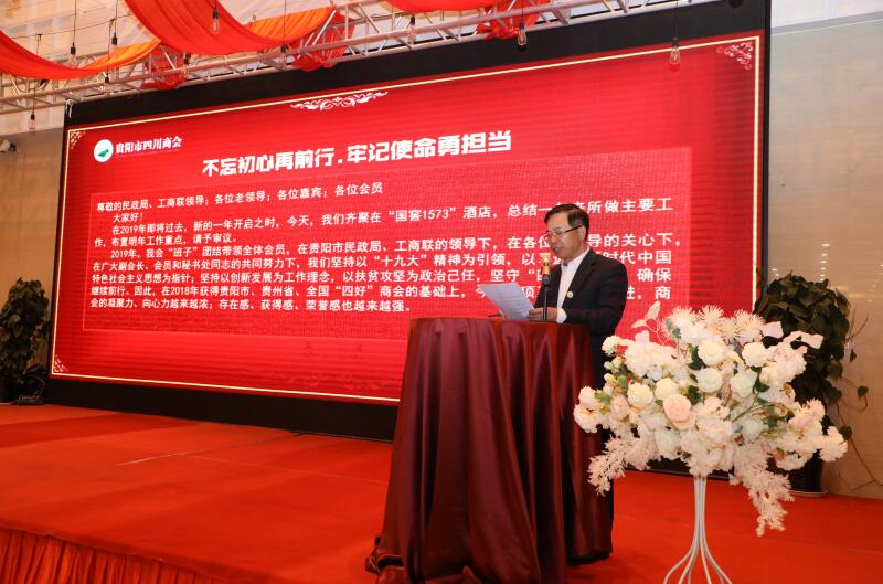 2019年12月20日, 优米网官方下载安装在国窖1573酒店,隆重召开2020年迎春联谊会。贵阳市民政局王俊副局长、邹兴主任;贵阳市工商业联合会施波主席、梁鹤林副主席,会员部杜骏;荣誉会长罗南孝、吴进德、邱学尧、寇生田;荣誉顾问刘建军、杜向东;重庆广安商会、贵州省四川总商会、贵阳市四川自贡商会;我会全体会员200余人参加。常务副会长兼秘书长付正虎主持。