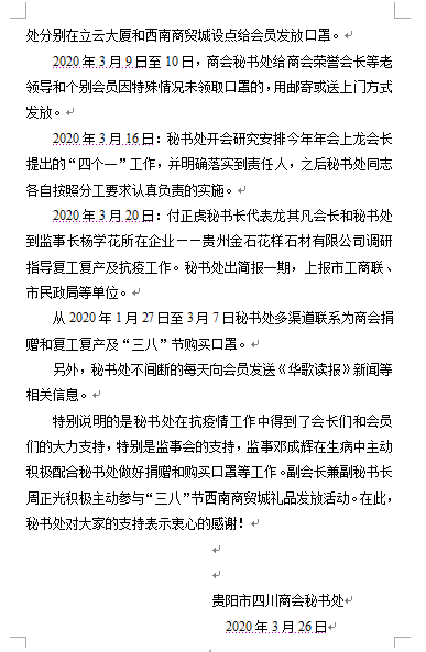龙其凡会长对前期全体会员和秘书处抗疫所做工作给予了肯定,并要求大家要毫不松懈搞好抗疫和商会各项工作,以实实在在的成绩,向商会十周年庆献礼。