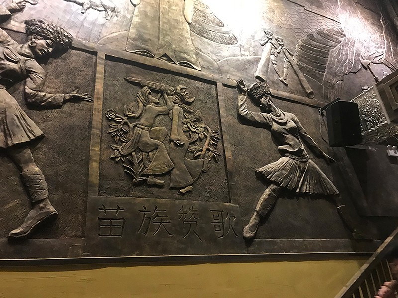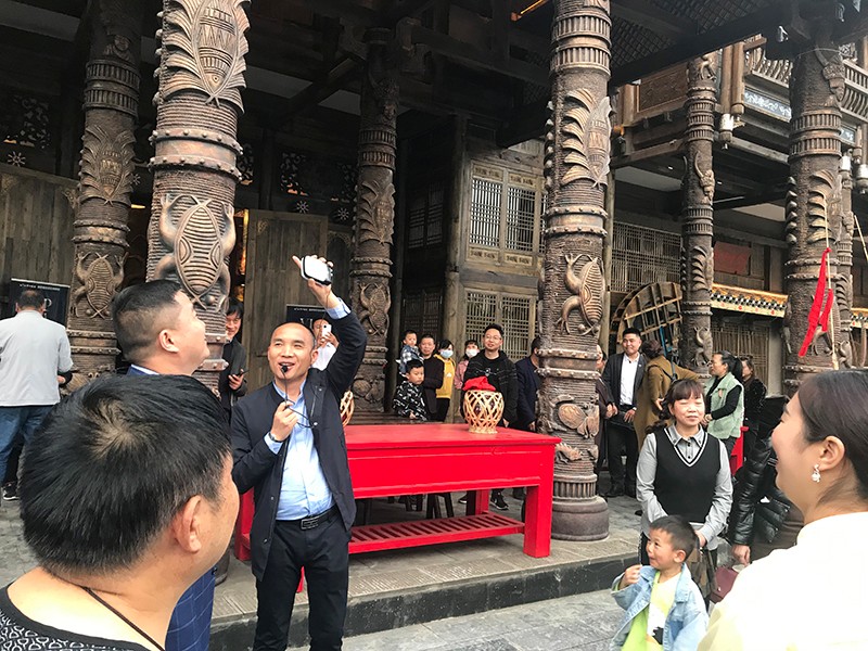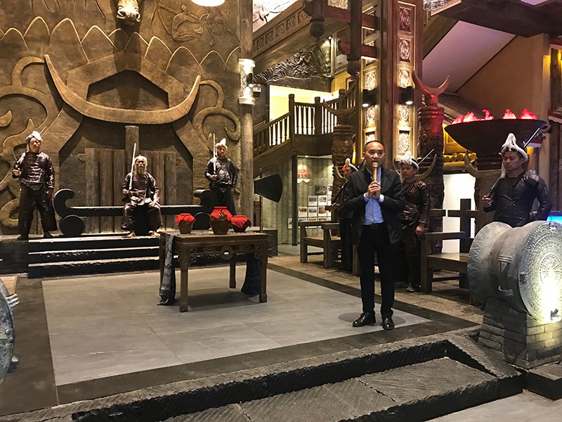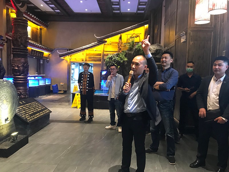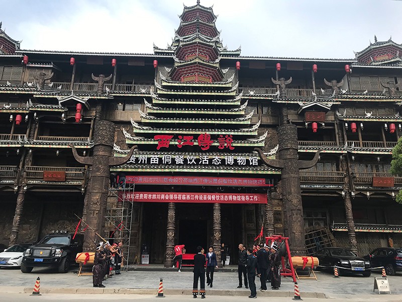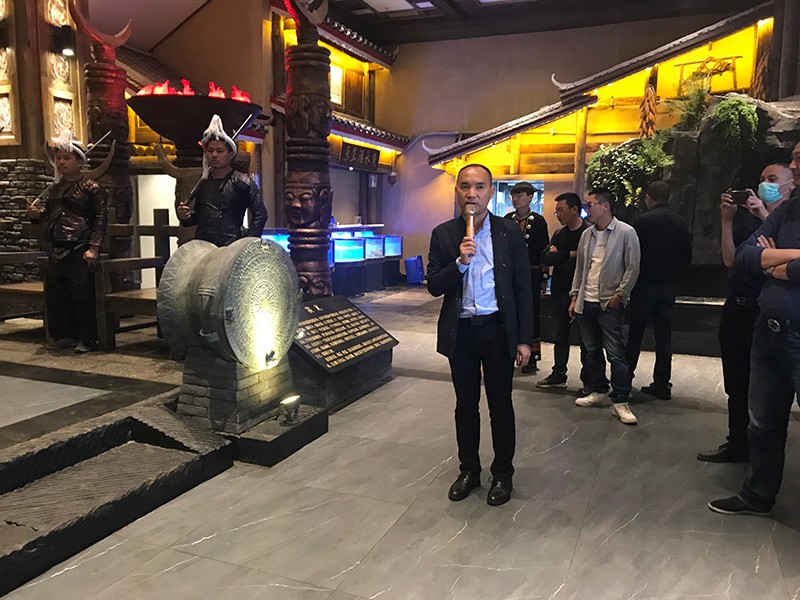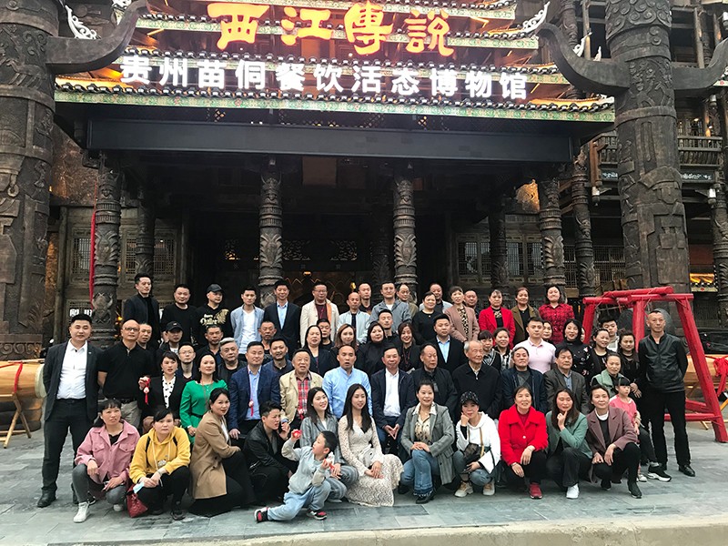 西江传说董事长杨景勇带领大家参观博物馆,并亲自讲解馆内主要内容。该馆占地30亩,建筑面积近二万平方米,经过数百名工匠,历时数年,打造成了中国乃至世界苗侗族最恢宏、最具民族特色的苗侗餐饮文化博物馆。打破了四项苗侗文化、风格、建筑等世界吉尼斯纪录,所有参观者无不为之震憾,大家合影留念。
