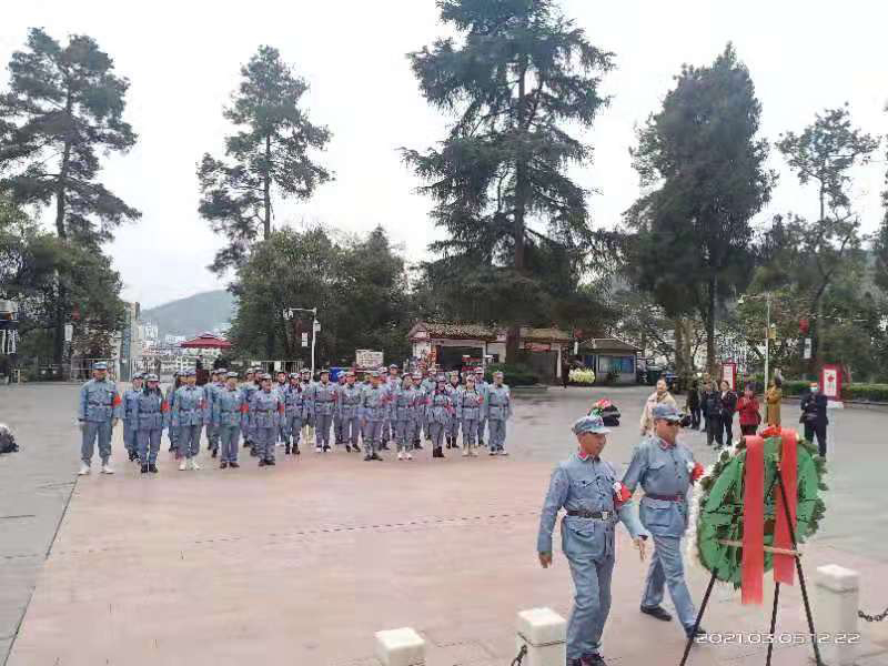 首先,参加活动的全体人员着红军装到红军山参观了革命烈士陵园,大家怀着无比崇敬而又沉痛的心情缅怀革命烈士,向烈士们三鞠躬并献花。顾问刘建军、会长龙其凡、支部书记付正虎和支委委员周正光向烈士敬献了花蓝。紧接着参观了中国共产党历史上生死攸关转折,并确立了毛泽东同志在党和红军中的领导地位,结束王明“左”倾教条主义在党内统治,从而使党领导的民主革命转危为安的遵义会议会址。大家一边认真聆听讲解员的讲解,一边仔细参观了遵义会议会址内的各种陈设和遵义会址陈列馆里的历史资料图片等。参加活动人员并分别在烈士陵园和遵义会址合影纪念。