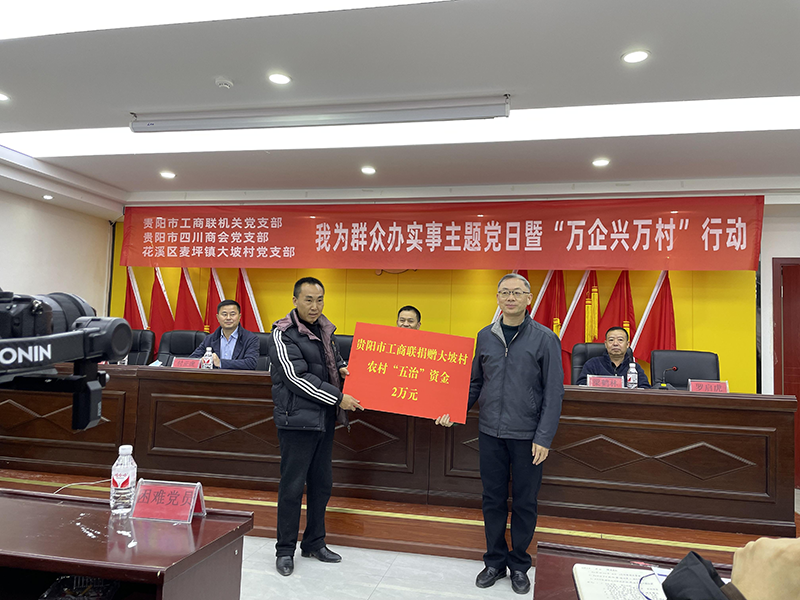 2021年12月7日,优米网官方下载安装全体党员、副会长30余人,积极响应党中央的号召,致富不忘感党恩,尽其所能,发动党员、会员捐2万余元衣物,商会在自身条件并不太好的情况下,挤出2万元,为结对帮扶的花溪区麦坪镇大坡村修建一段学校道路;并拿出3000元,慰问十名老党员。贵阳市工商联党组成员、副主席刘刚主持捐赠仪式。会长龙其凡、党支部书记付正虎讲话,并亲手将2万元修路款、2万余元衣物交到大坡村党支部书记罗启虎和十名党员手中。龙会长说,我会虽财力不算雄厚,只能尽一点心意,深感党和人民心连心。今后还要进行常态化帮扶。这是党员、企业家应尽的责任。大坡村党支部书记罗启虎代表村委和老党员对商会义捐致谢。