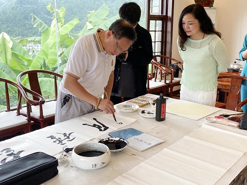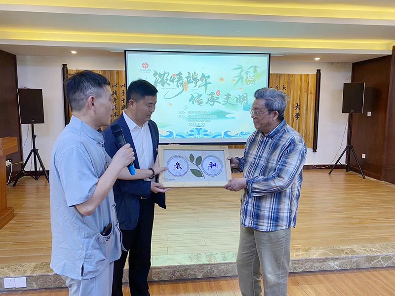 活动当天,会长企业贵阳市亲和国学文创园荣膺“贵阳爱心公益书画院研学基地”殊荣,贵州省爱心公益书画院理事长谌贻全亲自为其授牌,会长付正虎在接牌后发表了热情洋溢的讲话,并借此助力传播传统文化,让大家进一步感受到了民族