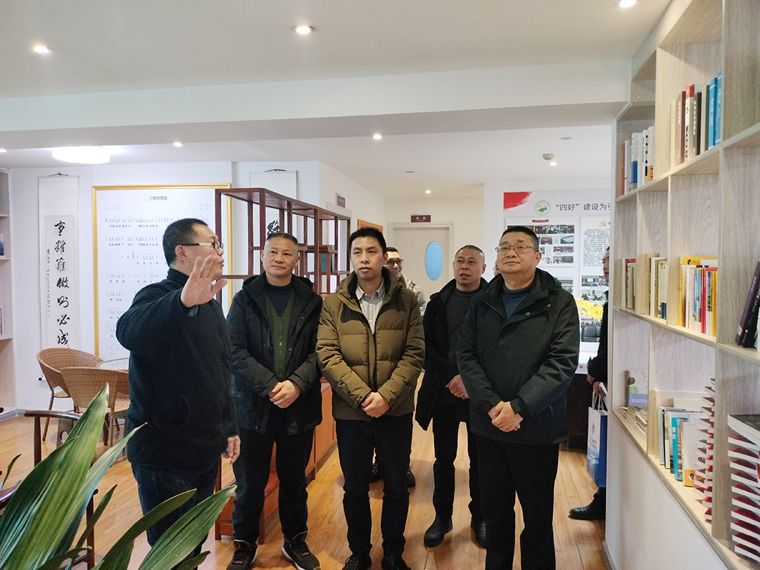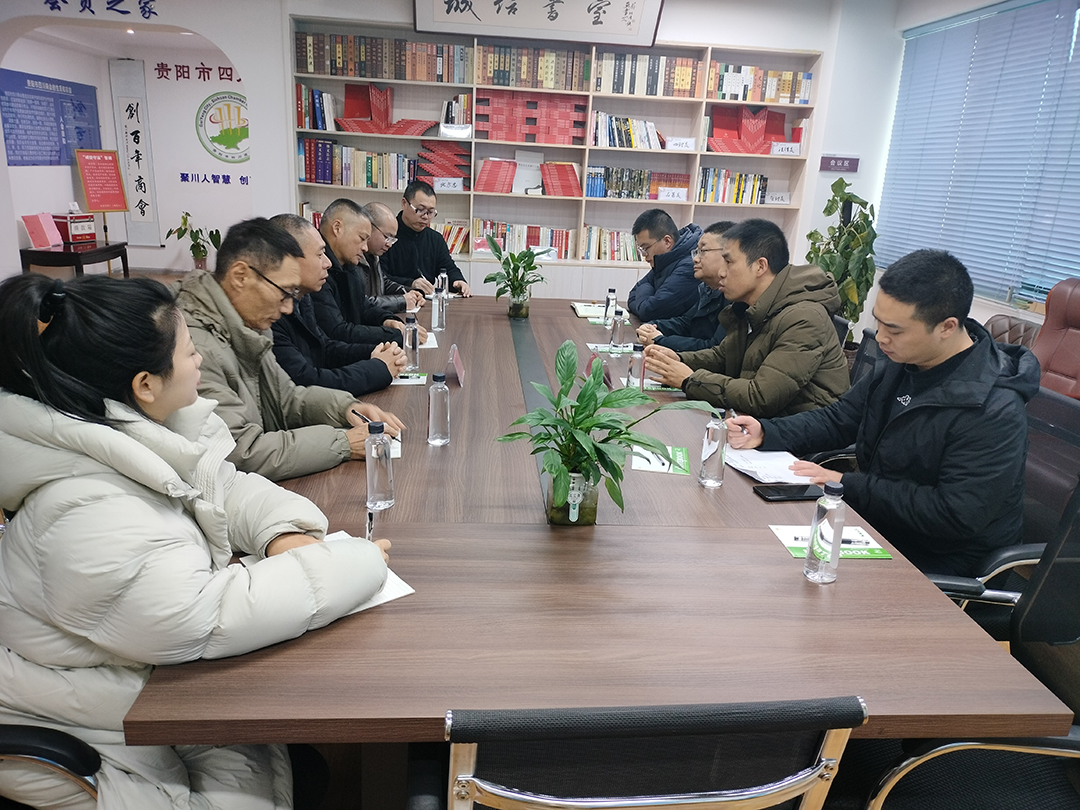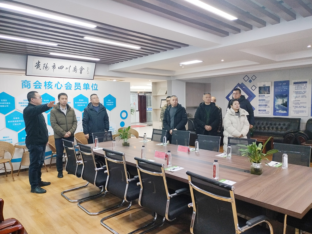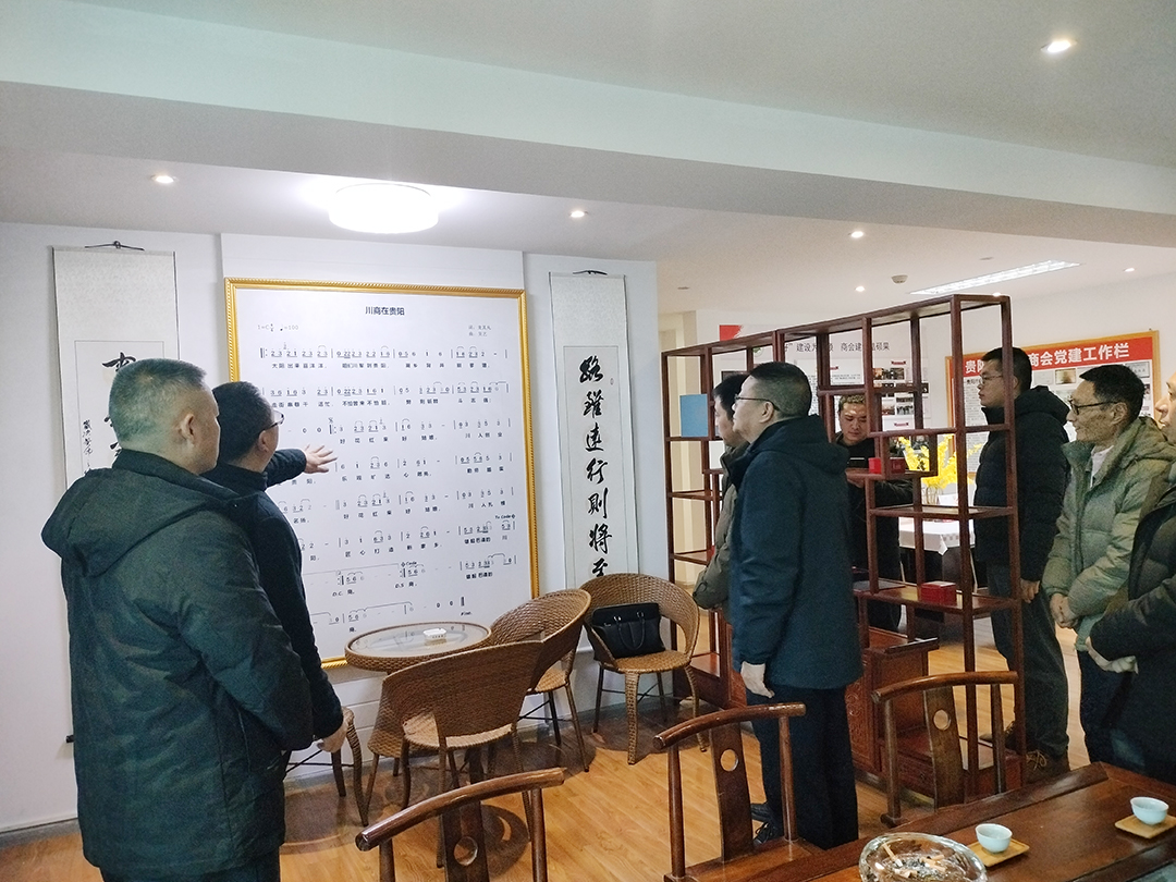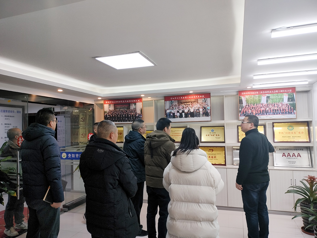 陈银副支队长一行首先参观了商会的党建工作和文化建设,深入了解了商会的组织架构、工作流程、会员构成等方面的情况。通过参观,大家对商会的日常运营和发展规划有了更深入的了解,陈银副支队长对商会各项工作给与了充分肯定,赞扬党建工作引领商会建设做得特别好,“聚川人智慧 创百年商会”的愿景富有文化底蕴,新会员入会“诚信宣誓”和商会会歌《川商在贵阳》能够凝心聚力,在贵阳市异地商会中独树一帜。