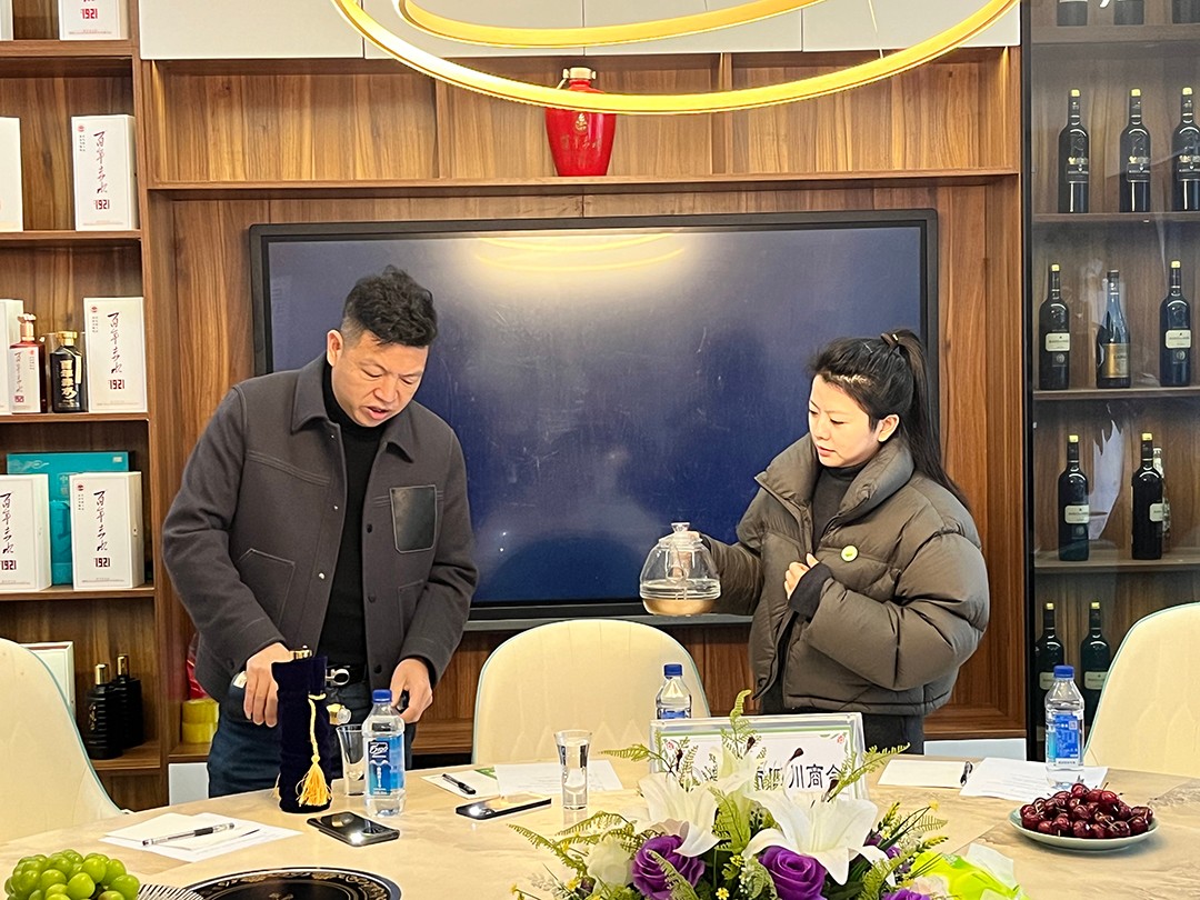 活动当天,大家首先参观了“满江红商贸”守庸阁茶文化工作室,然后回到会员企业满江红商贸接待办公处进行深入交流。在实地考察中,大家深入了解了会员刘一点企业的运营状况、产品特色、合作模式和市场前景。随后在工作人员的展示下,学习了多种品鉴酱酒的知识和技巧,增进了参会人员对酱酒知识和对“百年赤水”酒文化的了解。