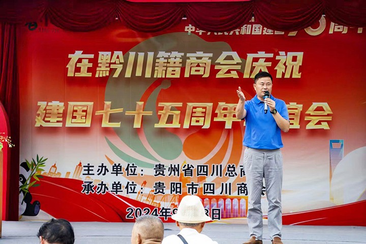 金秋送爽,硕果盈枝,筑城共庆华章。2024年9月28日下午,一场以二十届“三中全会精神指引强国新征程、在黔川商凝心聚力再创新辉煌”为主题的在黔川籍商会庆祝新中国成立75周年联谊会,在花果园中央公园行者市集坝坝文化广场盛大启幕。此次盛会,由贵州省四川总商会领衔主办,我会精心筹备并承办,活动汇聚了来自贵阳市及周边多个市县的在黔川籍商会代表,共计200余人欢聚一堂,共襄盛举。