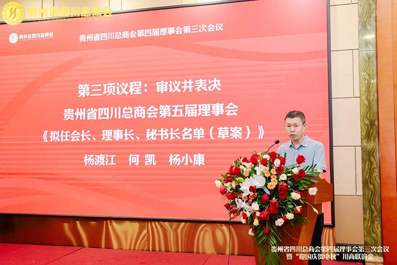 杨渡江同志在致辞中表示,将不负众望、恪尽职守,紧紧围绕“服务会员、凝聚乡情、促进合作、助力发展”的宗旨,持续推动商会规范化、专业化建设,强化与各级政府、企业和社会各界的沟通协作,为广大会员搭建更广阔的发展平台,为川黔两地高质量发展注入新动能。